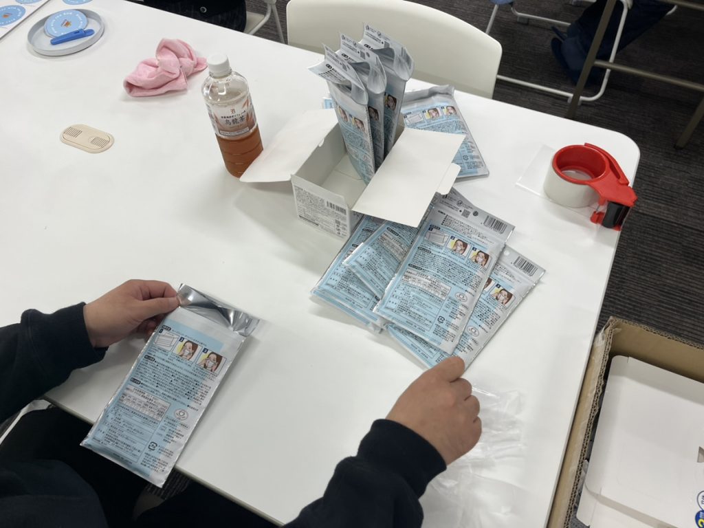 マスクを封入される方、それぞれの作業を振り分けてお仕事に取り組んでもらっています🎶
