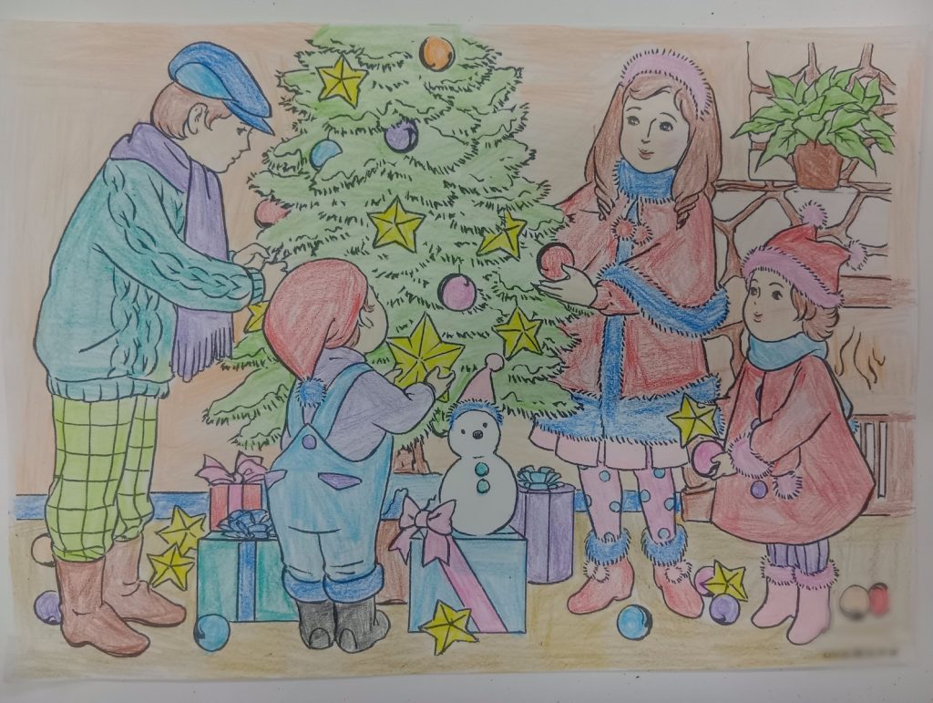 クリスマスツリーに飾られた星や雪だるま、人などに各種適切な色を塗っていきます😄