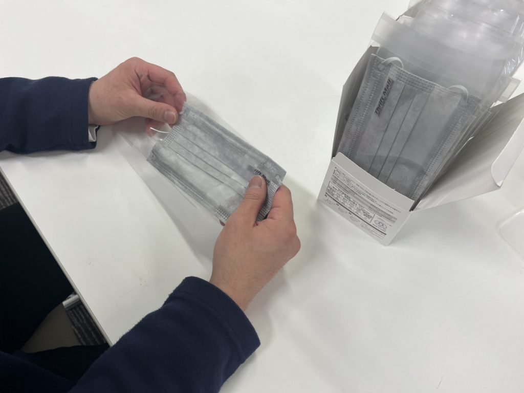 マスクにシールを貼って⇨透明袋にマスクを入れて⇨
